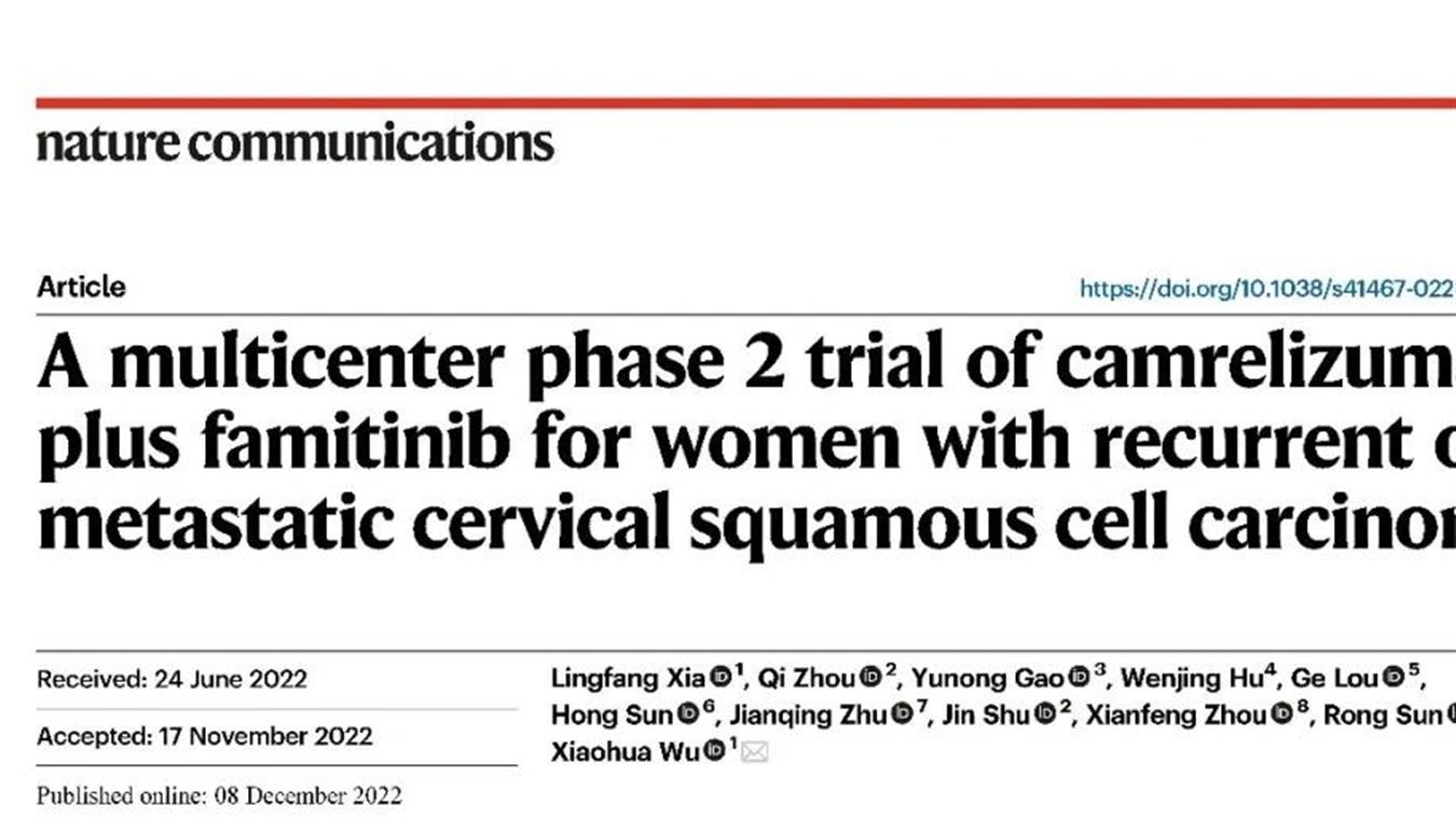 PA视讯创新药卡瑞利珠单抗联合法米替尼用于复发或转移性宫颈癌研究结果荣登JCO